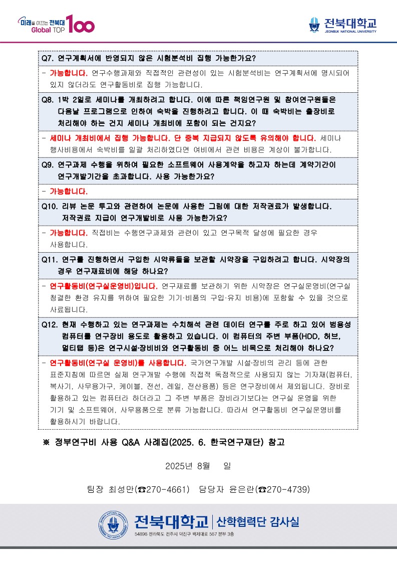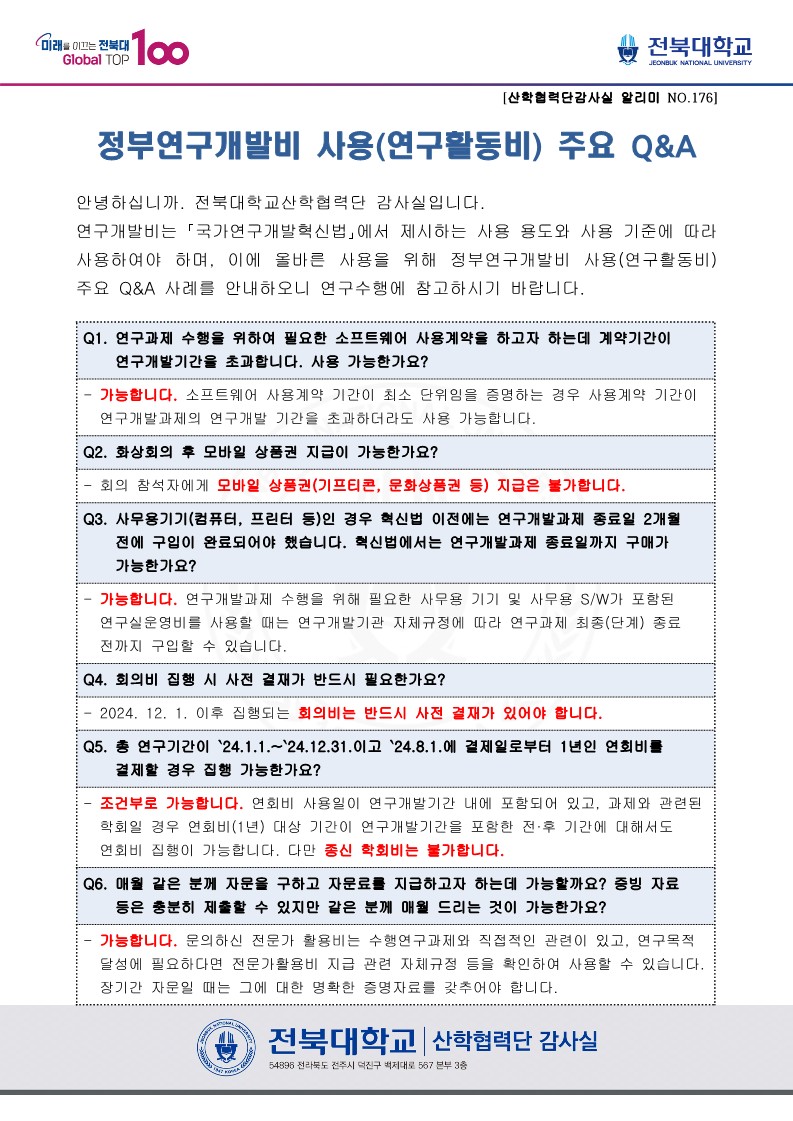 정부연구개발비 사용(연구활동비)주요Q&A [산학협력단감사실 알리미 No. 177]