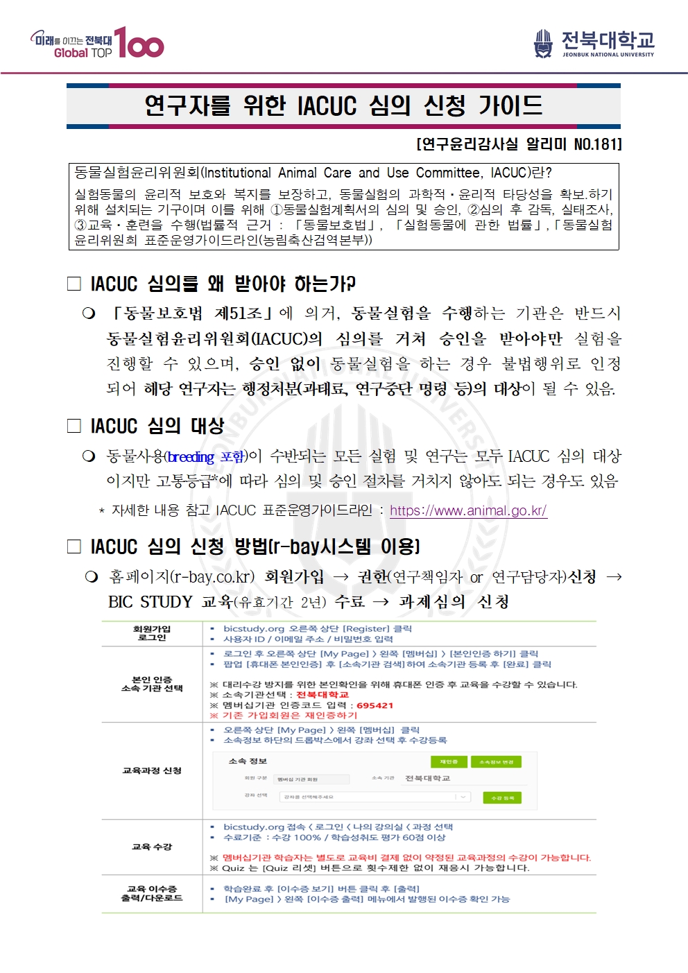 「연구자를 위한 IACUC 심의 신청 가이드」[연구윤리감사실알리미_No.181]